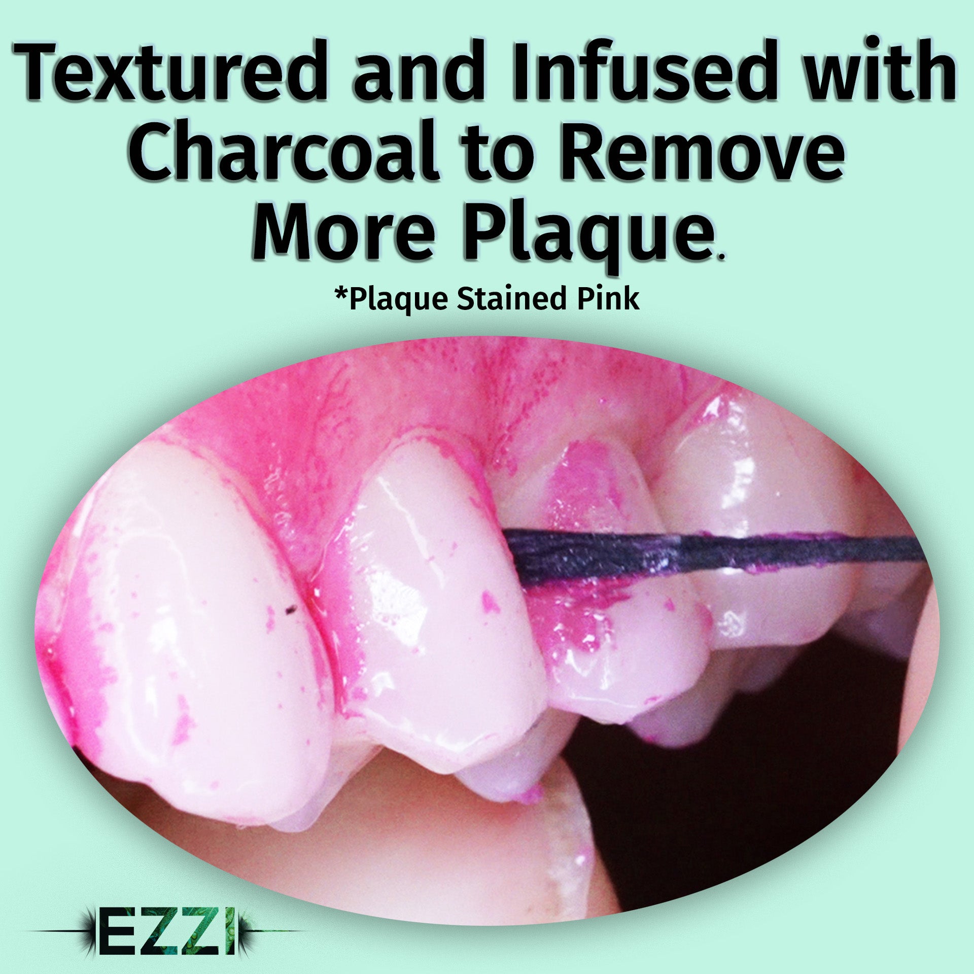 The charcoal infusion increases the grip on the plaque for enhanced debridement & the black color for visualization of plaque removal.
